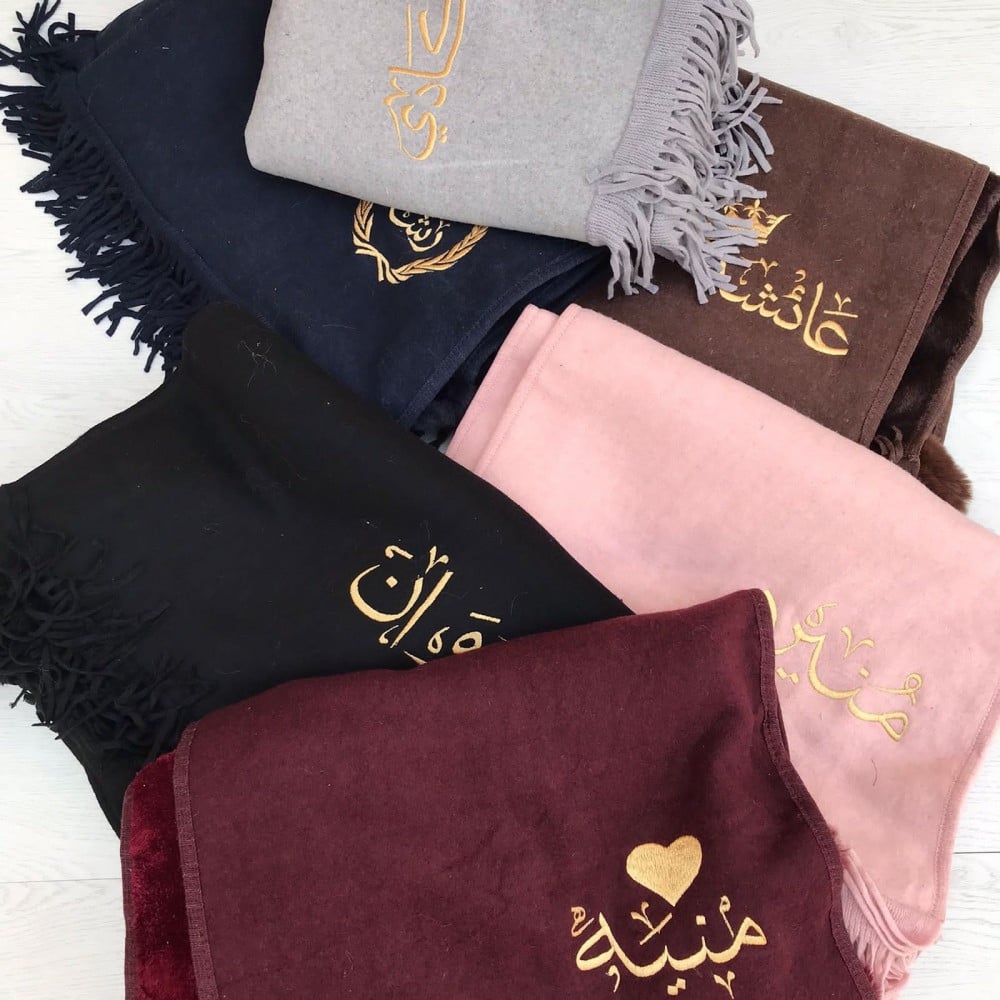 وشاح شتوي نسائي قماش صوف مع تطريز الاسم حسب اختيارك