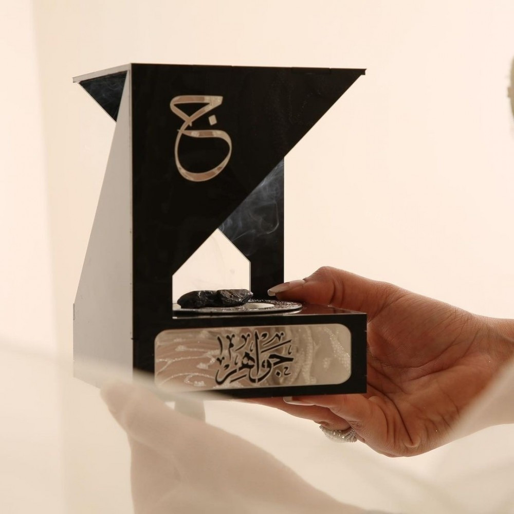 يتم وضع الاسم و الحرف المطلوب من الأكريليك الفضي اللامع بشكل انيق