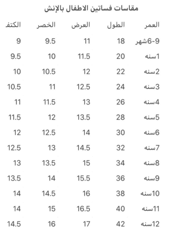 المقاس او العمر