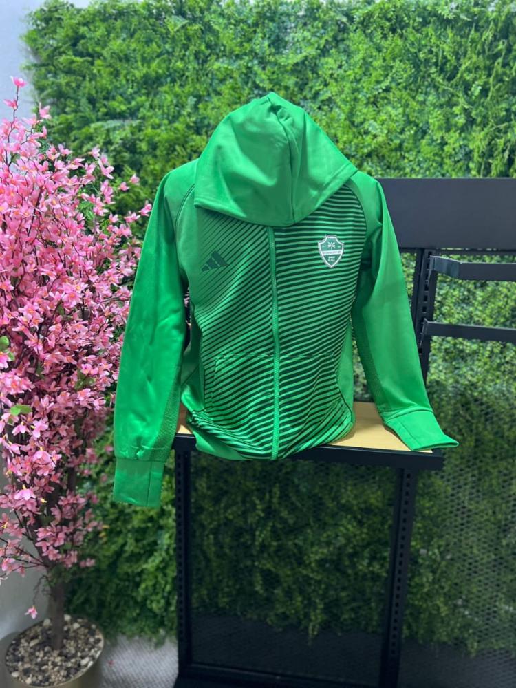 تمييز بشتاء دافئ مع بلوفر شتوي مع قبعه راس بشعار نادي الأهلي الأخضر