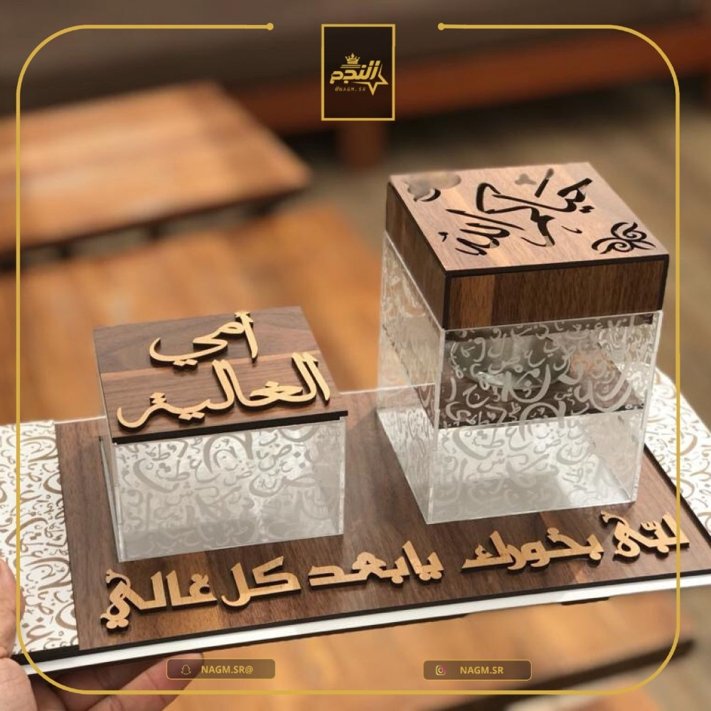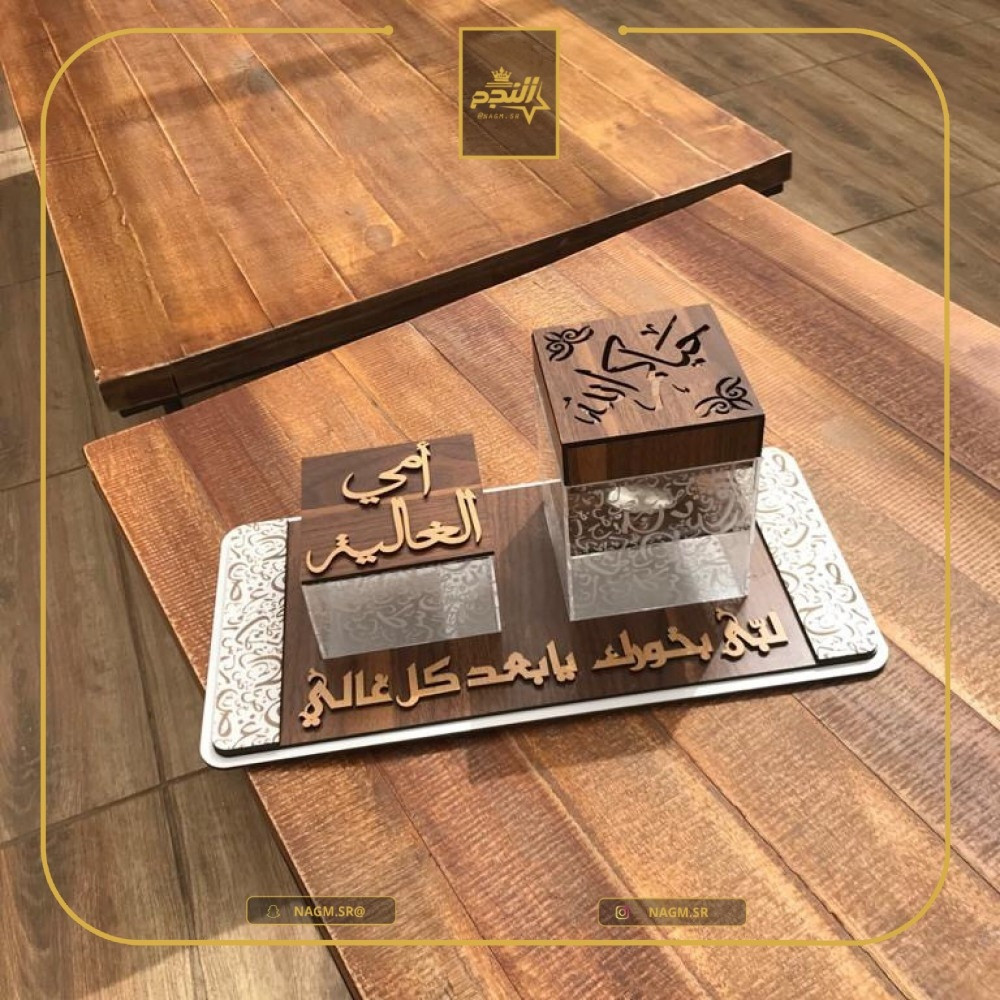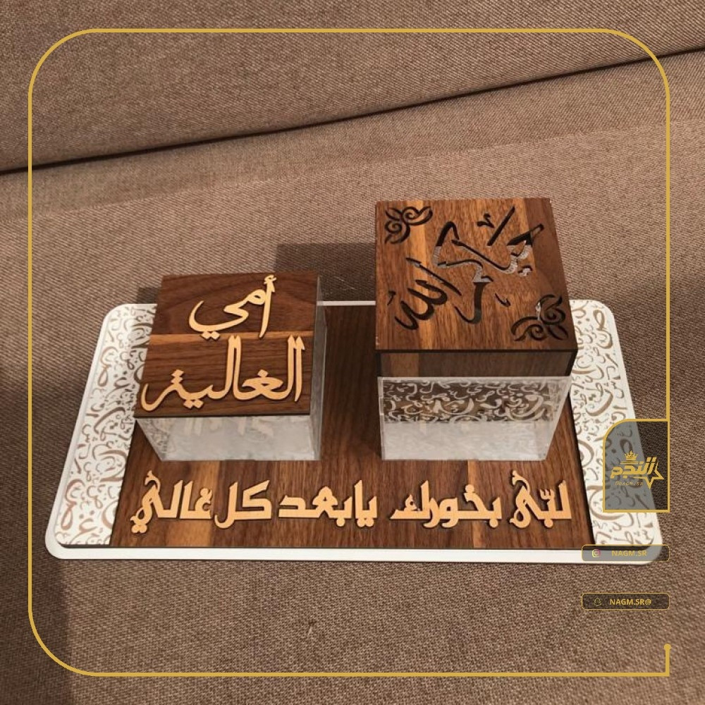 يمكنك كتابه الاسم علي المبخره وكذالك الصينيه