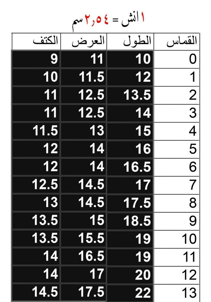 المقاسات تناسب الأجسام النحيفه والمتوسطه