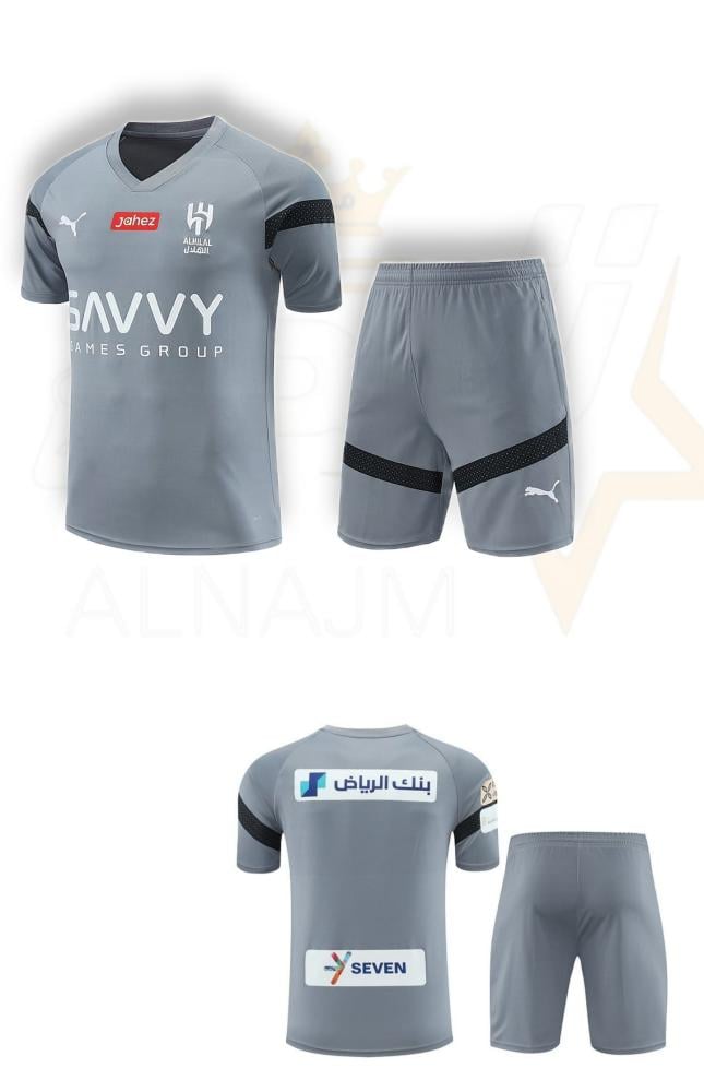 طقم تمارين نادي الهلال رمادي تيشيرت مع شورت 2024 لا يفوتك