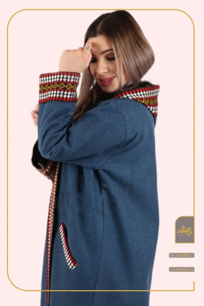 فررات شتوية نسائية لون كحلي بتصميم تراثي