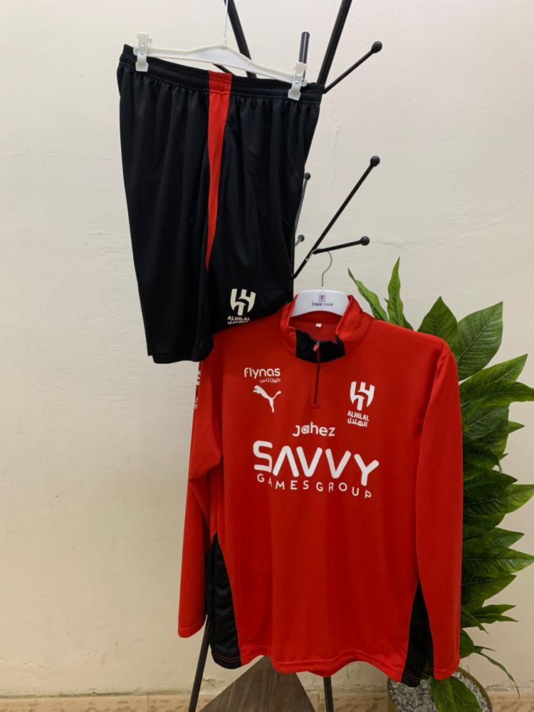 طقم تمارين الهلال سويتر احمر مع شورت قصير اسود الجديد 2026
